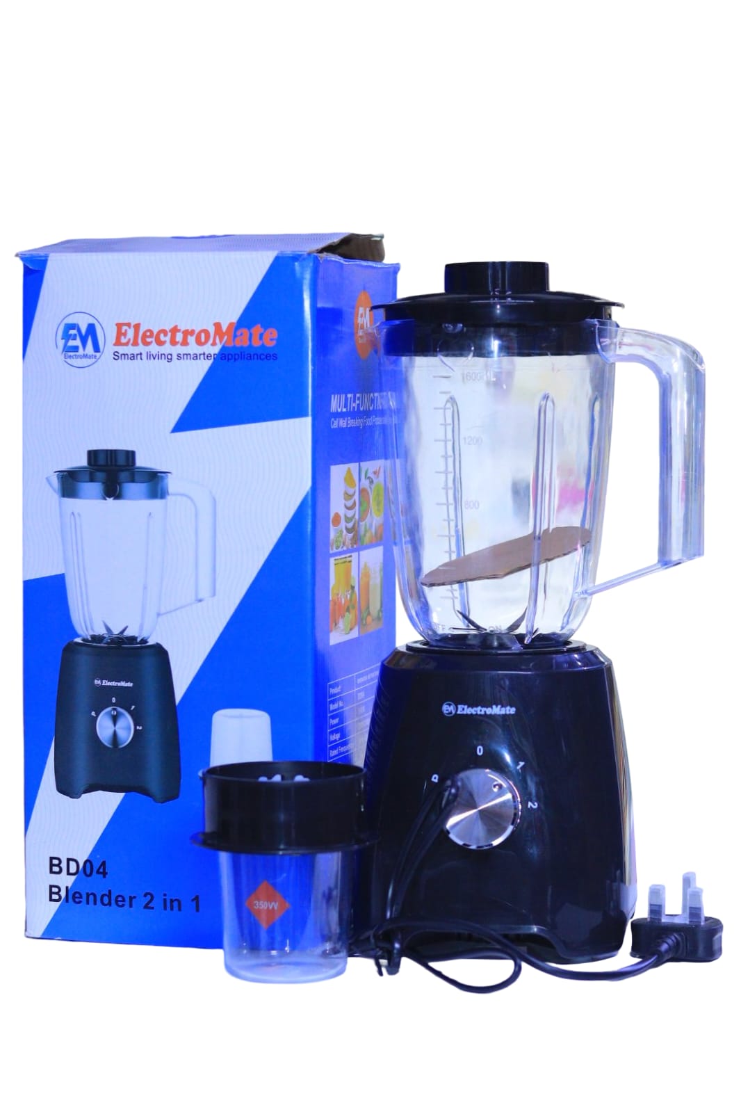 The Electromate Blender 2-in-1 BD03 is your all-in-one kitchen partner, designed to handle both blending and grinding with ease. Built with power, durability, and style, it’s perfect for smoothies, soups, sauces, and grinding spices or coffee beans.