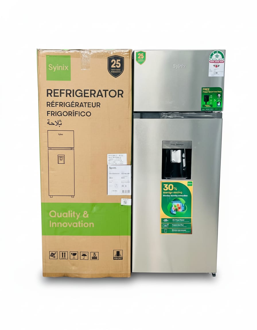 The Syinix FD275BF03WK 210L Fridge combines modern style with energy efficiency. Featuring a built-in water dispenser, powerful cooling system, and patented Power Master technology, it’s perfect for home or office use.